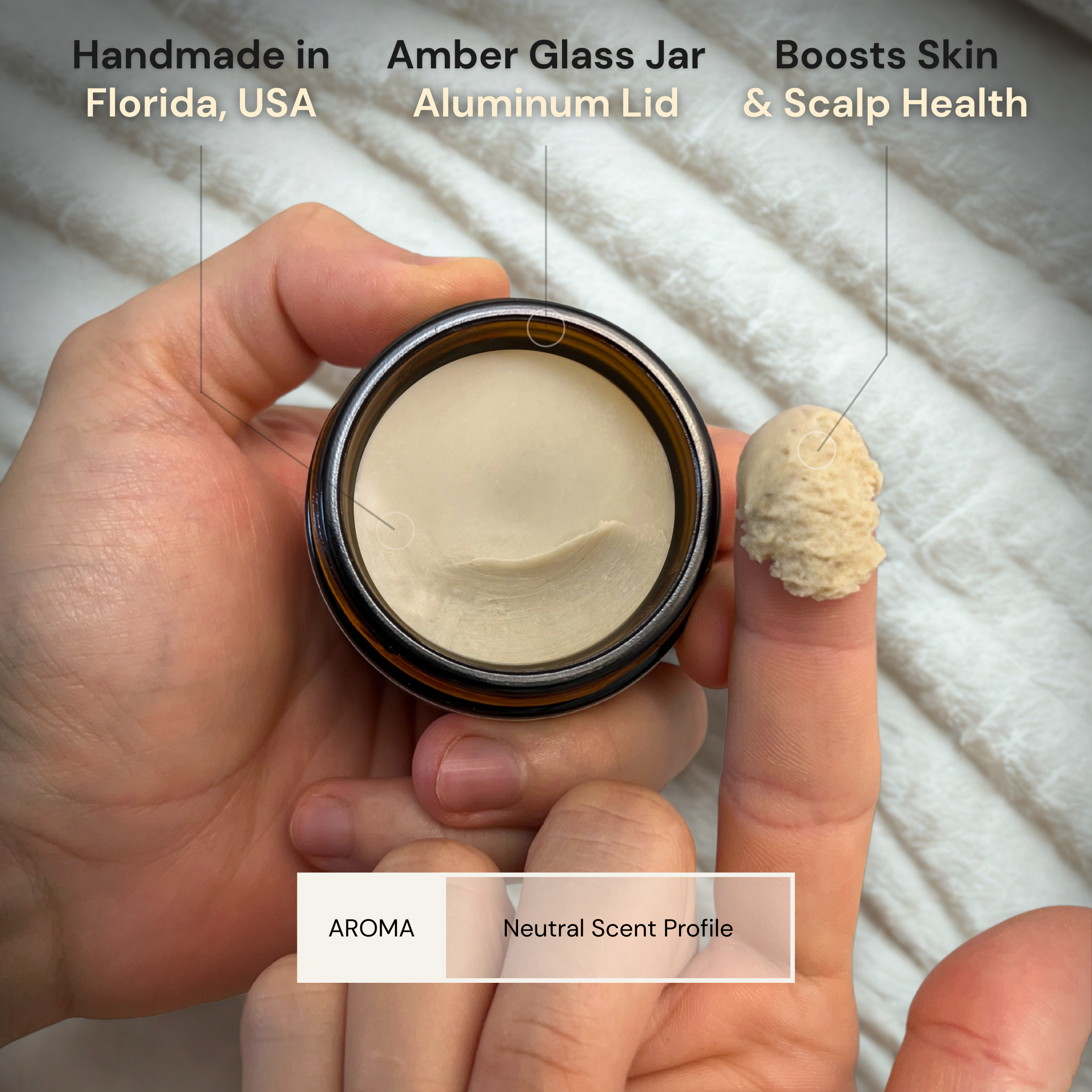 Feel: The skin balm feels like a semi-thick and rich butter as you spread and melt it evenly into your palms to get a smooth creamy consistency before applying.