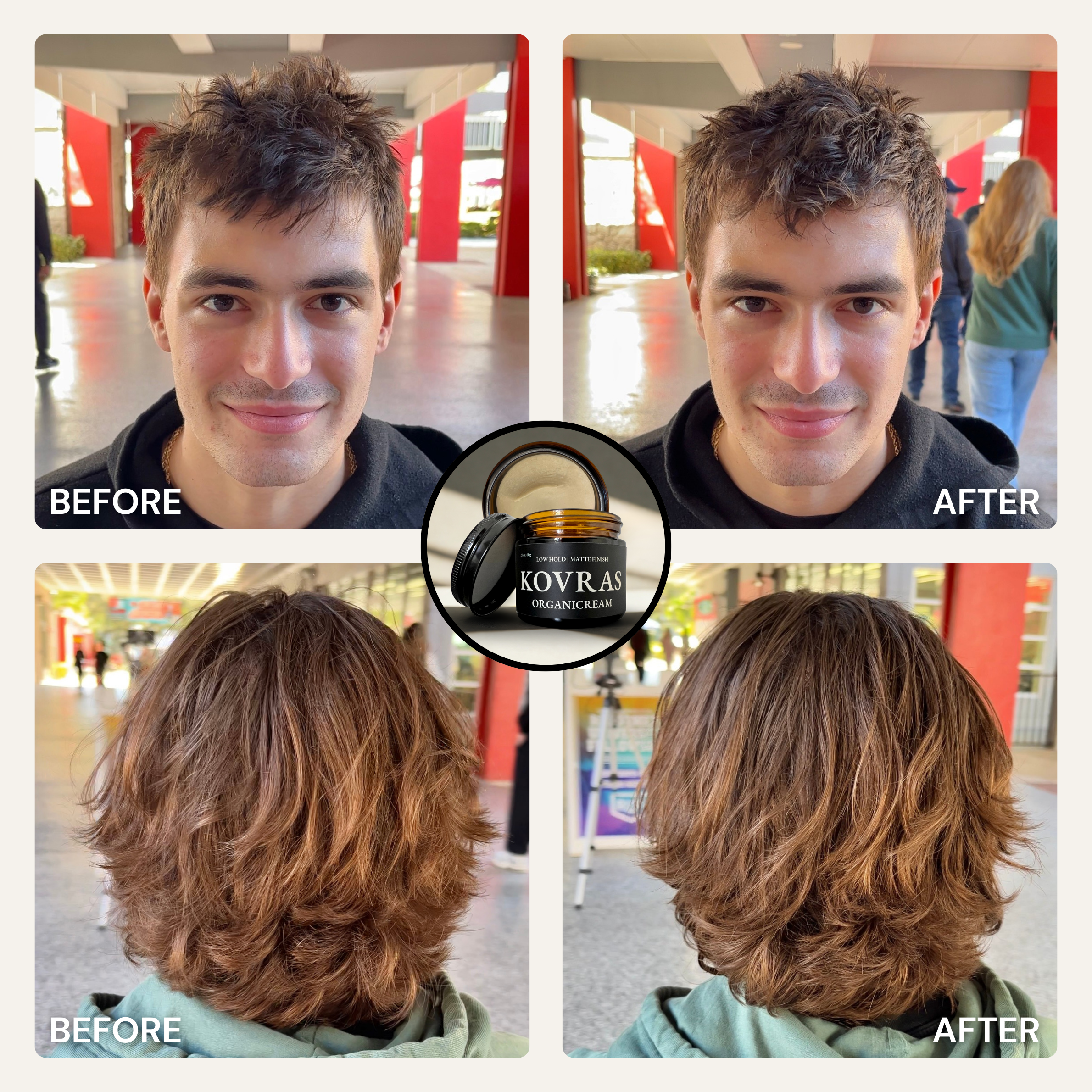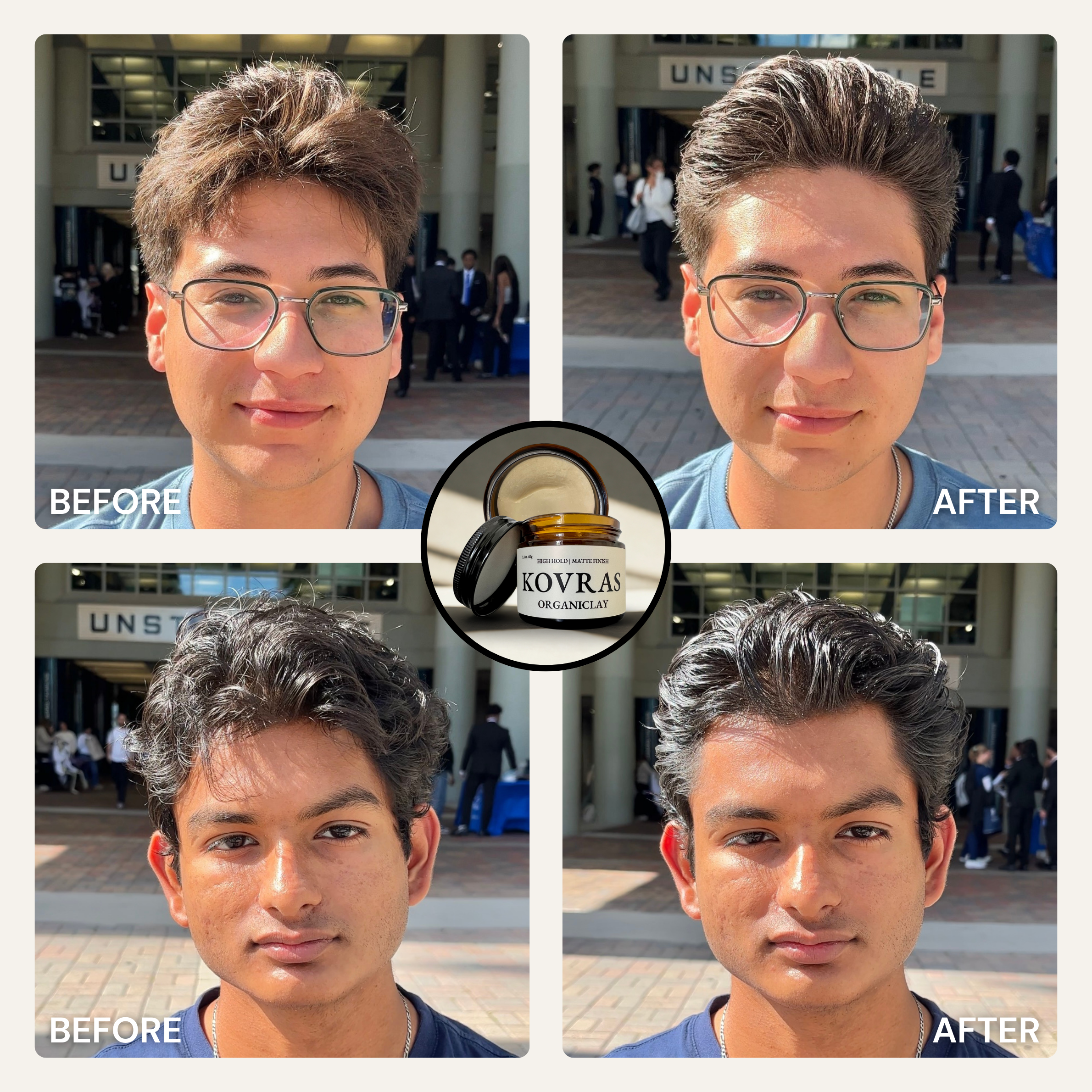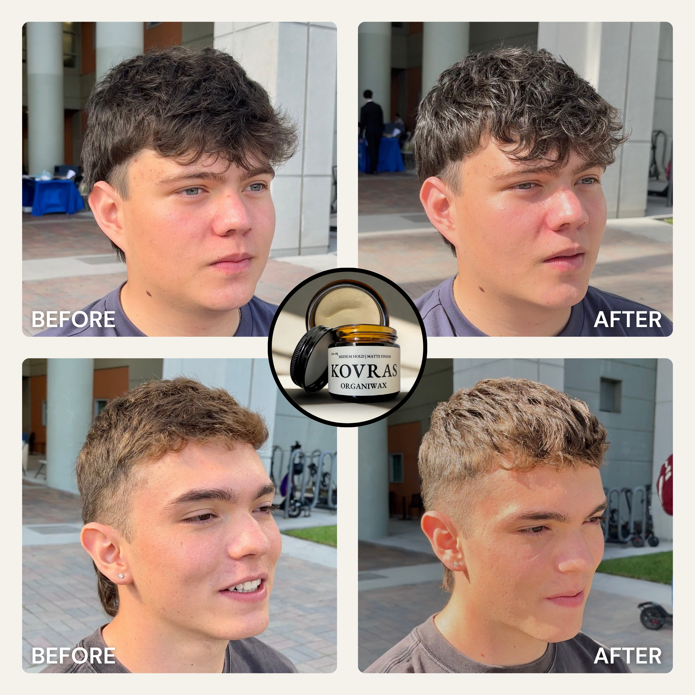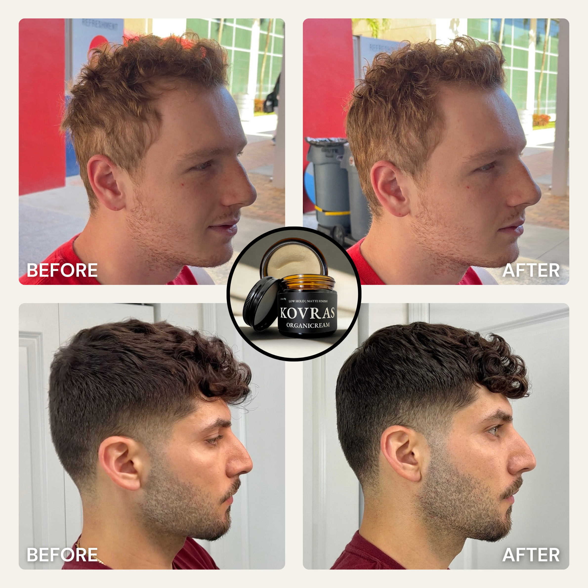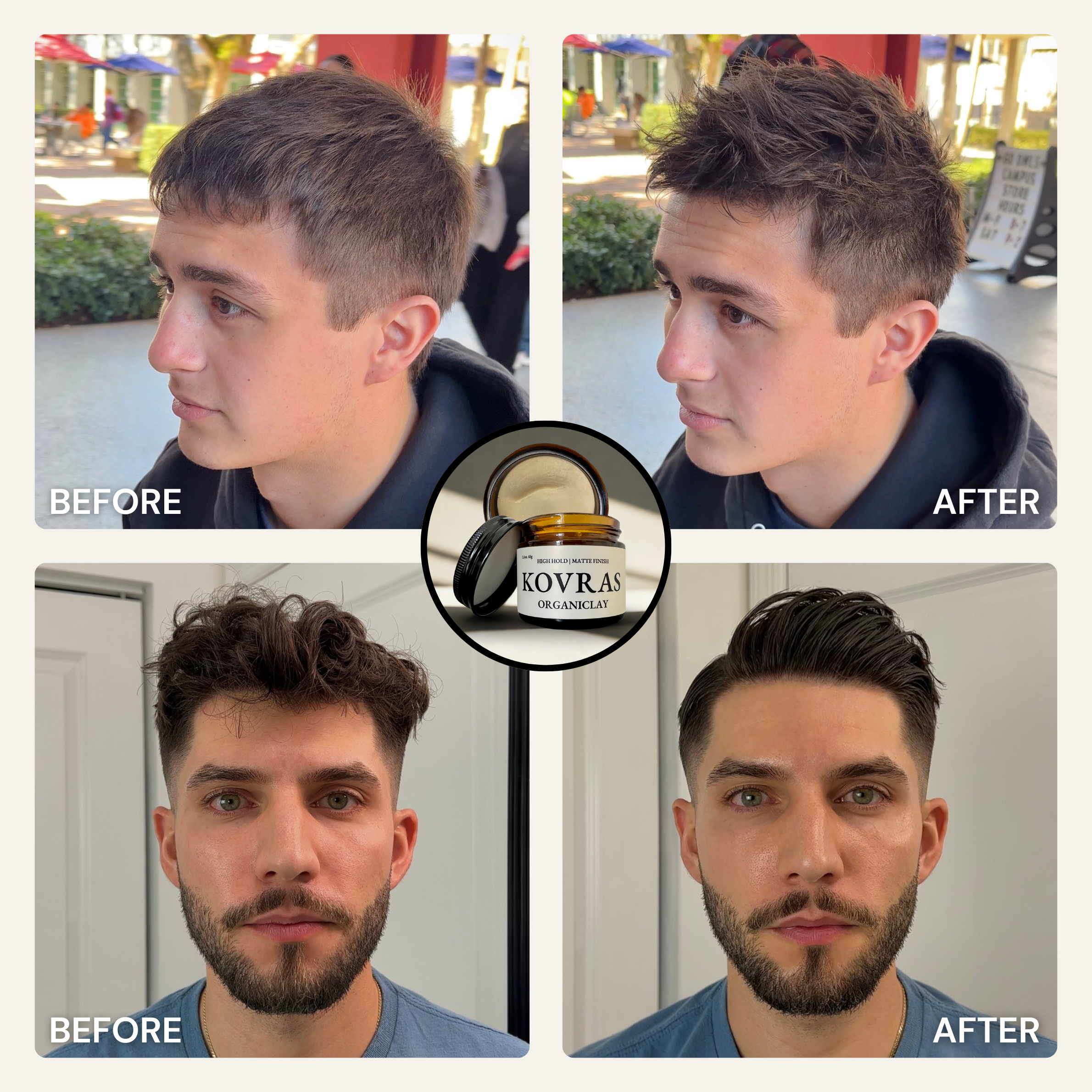 Designed for all hair types, textures, men, women and whoever! Organiclay works best for short to medium-length hair (1-4 inches). Organiwax works best for medium to longer-length hair (3+ inches). Organicream works best for buzz cuts (<1 inch) and longer-length hair (4+ inches). All three are ideal for straight, wavy, or slightly curly textures. Whether you’re styling a messy, structured, or clean-cut look, this clay provides versatile hold and control.